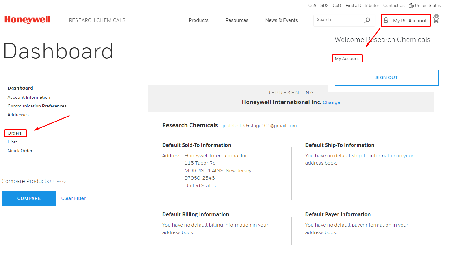 After you have completed registration and logged in for the first time, please setup your account dashboard (click on “My RC Account”). Here you can personalize your account information to get access to online ordering, order status, application notes and other resources. You should also setup addresses and customize communication preferences.